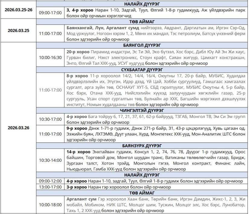 Дараах байршилд түр хугацаанд цахилгааны хязгаарлалт хийнэ.