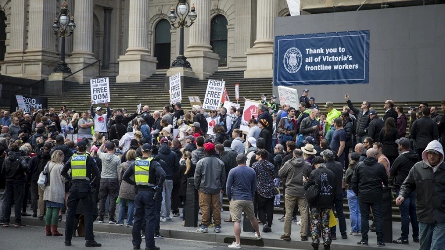 Австралийн Викториа мужийн Мельбурн хотод хөл хориог цуцалж, эдийн засгаа сэргээхийг шаардсан олон нийт жагсаал зохион байгуулжээ.