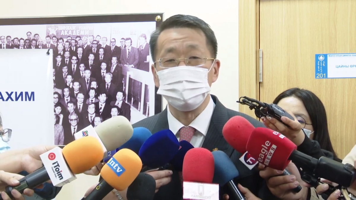 БШУ-ны сайд Л.Энх-Амгалан мэдээлэл хийж байна.