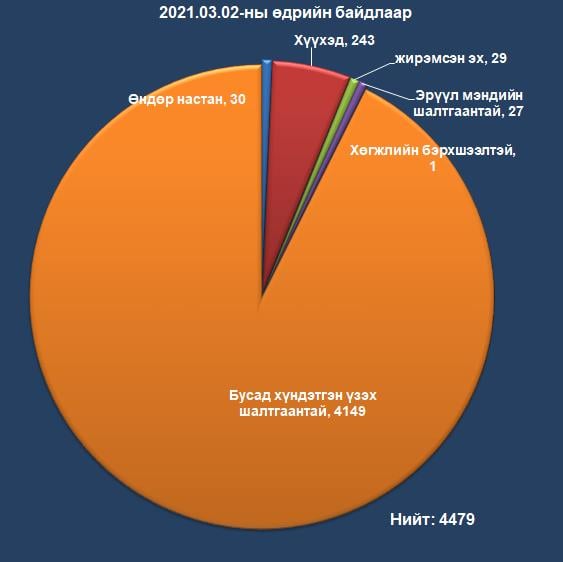 2021 оны 03 дугаар сарын 02-ний Мягмар гарагийн байдлаар Консулын хэлтэст нутаг буцах хүсэлтэй нийт 4479 иргэний өргөдөл бүртгэлтэй байна. Өргөдөл гаргасан иргэдийн 30 буюу 0,6 хувийг өндөр настан /асран хамгаалагчийн хамт/, 243 буюу 5.4 хувийг 0-18 насны хүүхэд /асран хамгаалагчийн хамт/, 29 буюу 0.6 хувийг жирэмсэн эх /асран хамгаалагчийн хамт/, 27 буюу 0.6 хувийг эрүүл мэндийн шалтгаантай иргэд /асран хамгаалагчийн хамт/, 1 буюу 0,02 хувийг хөгжлийн бэрхшээлтэй иргэд /асран хамгаалагчийн хамт/, үлдсэн 4149 буюу 92,6 хувийг бусад хүндэтгэн үзэх шалтгаантай иргэд эзэлж байна.